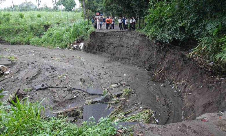 Hujan Lebat, Jalan Sepanjang 15 Meter Terputus di Sepawon Kediri