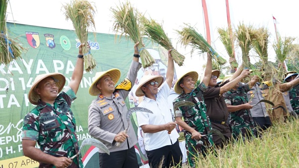 Dalam kesempatan itu, Dandim 0809/Kediri Letkol Inf Ragil Jaka Utama bersama Wakil Wali Kota Kediri Wakil Wali Kota Kediri Qowimmudin Thoha, Kapolres Kediri Kota AKBP Bramastyo Priaji serta jajaran forkompimda lainnya memanen padi total kurang lebih 10 ton.