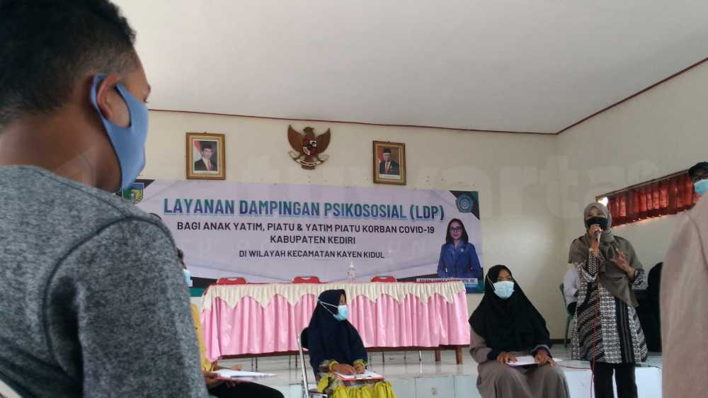 Di Kecamatan Kayen Kidul sendiri ada 14 anak yang menjadi korban covid-19. LDP ini turut menghadirkan psikolog untuk memotivasi anak-anak, serta tak lupa Dinas Sosial Kabupaten Kediri turut memberikan paket bantuan yang berisi alat-alat tulis, perangkat sholat dan permakanan.