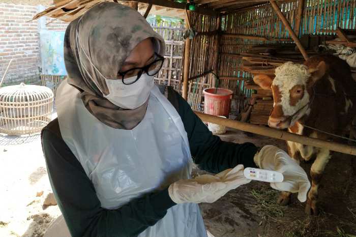 Sebelumnya pada awal bulan Mei lalu salah satu dari dua ekor sapi milik Bakur tiba-tiba mati. Untuk mengantisipasi penyebaran PMK, DKPP Kabupaten Kediri melakukan rapid test pada sapi yang masih hidup. Dari hasil rapid test diketahui sapi yang masih hidup tersebut negatif PMK.