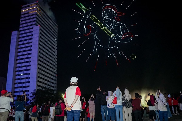 “Kita ingin menunjukkan bahwa semangat juang 80 tahun Indonesia merdeka kini diwujudkan dalam bentuk kreativitas dan teknologi. Pertunjukan drone ini adalah persembahan anak bangsa, yang merepresentasikan kekuatan persatuan sekaligus optimisme menuju masa depan,” ujar Menteri Ekraf Teuku Riefky.