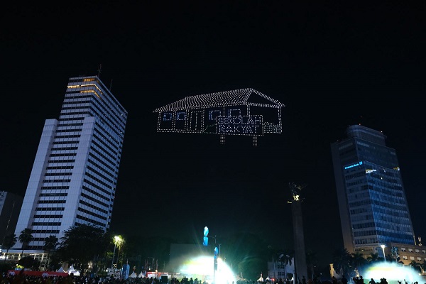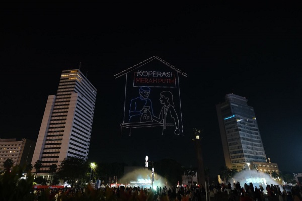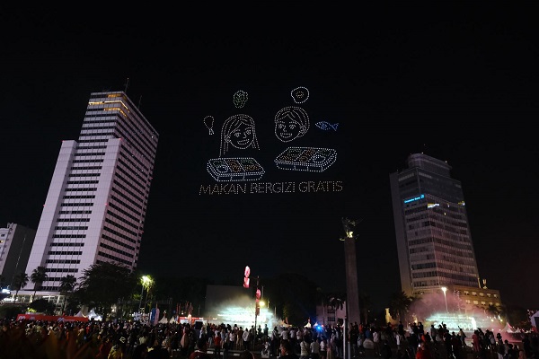 Sekitar 1.400 drone diterbangkan di udara membentuk formasi visual yang menceritakan perjalanan sejarah bangsa, mulai dari perjuangan merebut kemerdekaan hingga program prioritas pemerintahan Presiden Prabowo Subianto.