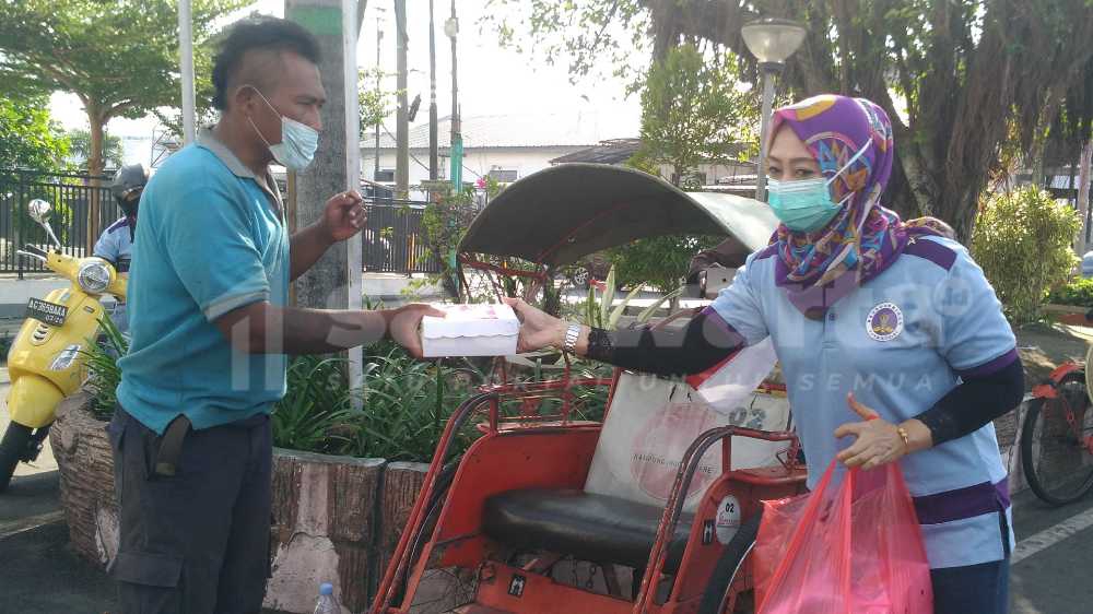 Start dari RSUD Gambiran, setidaknya 200 paket sembako dan 500 kotak makan pagi diberikan kepada tukang becak, ojek online, pedagang kecil serta warga lain yang membutuhkan di sepanjang jalanan kota Kediri.