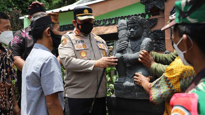 Kapolres Kediri Kota Serahkan 2 Arca Pengganti Untuk Pura Joyo Amijoyo