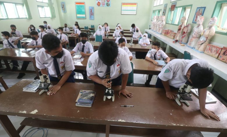 satuwarta.id – Saat ini, pelajar kelas 6-9 di Kota Kediri sudah masuk penuh atau 100 persen. Namun, mereka tetap masuk dengan durasi jam yang terbatas dan prokes ketat, karena saat ini masih pandemi Covid-19.