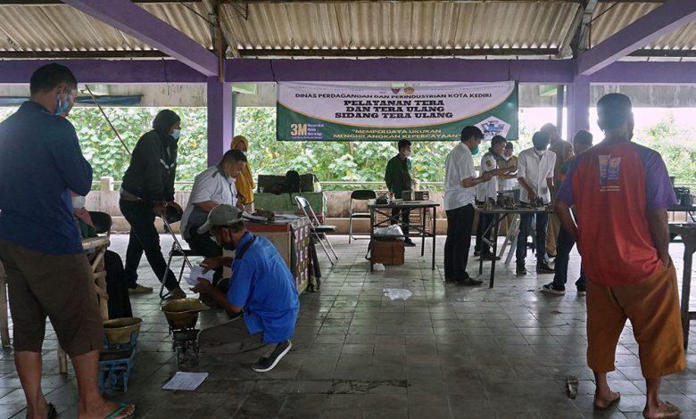 satuwarta.id – Puluhan pedagang Pasar Bandar Kota Kediri dan sekitarnya mengikuti sidang tera di Lantai 2 Pasar Bandar pada Senin (08/11/2021) pagi. Sidang tera dan tera ulang yang dilaksanakan UPT Metrologi Dinas Perdagangan dan Perindustrian Kota Kediri ini dilakukan untuk perbaikan alat ukur takar timbang dan perlengkapannya (UTTP).