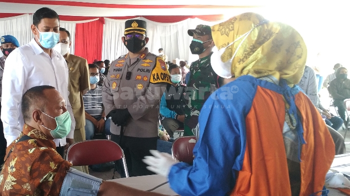 “Mengatasi membeludaknya pendaftar vaksinasi secara online yang mencapai 7.000an, maka kita tambah lokasi vaksinasi selain puskesmas dan rumah sakit. Di sini warga bisa langsung datang dan daftar manual. Serta, di sini sirkulasi udara lebih segar dan sehat sehingga tenaga kesehatan senang dan warga Kota Kediri bisa vaksinasi sekaligus refreshing.” ujar Mas Abu, panggilan akrab Wali Kota Kediri.