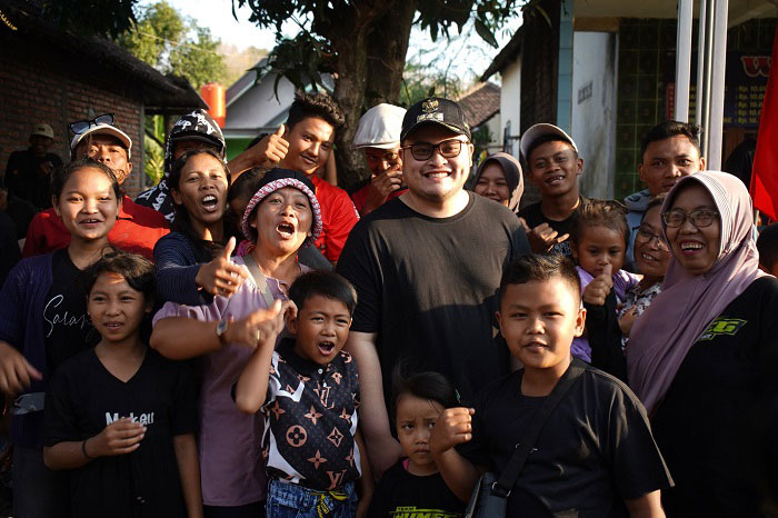 Mas Dhito terlihat menyalami warganya dari titik start sampai hampir Simpang Empat Bulawen yang diperkirakan panjangnya 500 meter tersebut. Bahkan dirinya juga tak menolak saat dimintai swafoto oleh warganya.
