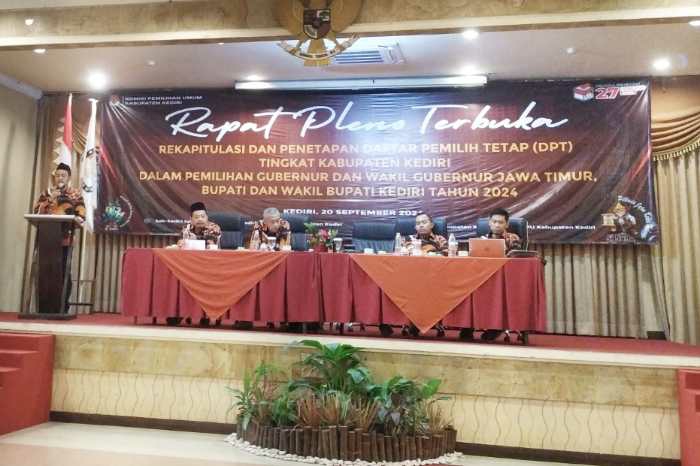 Melalui rapat pleno terbuka penetapan DPT, KPU Kabupaten Kediri menetapkan jumlah pemilih tetap sebanyak 1.254.964.