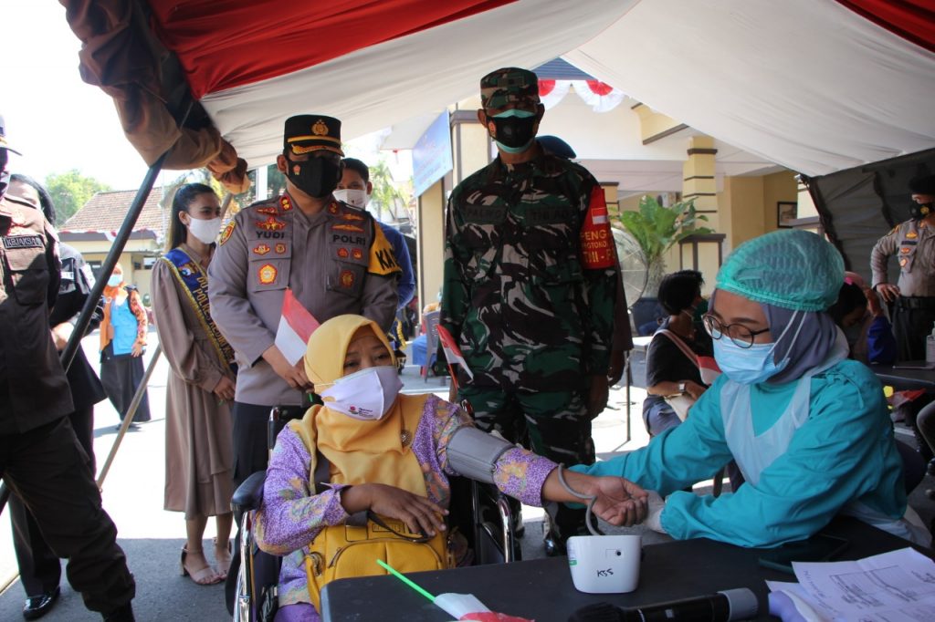 satuwarta.id – Puluhan penyandang disabilitas, Selasa, (10/08/2021) melakoni vaksinasi dosis pertama di halaman Mako Polres Kediri Kota.