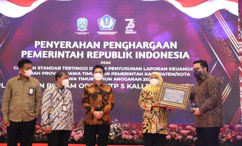 Raih WTP Untuk Kelima Kali, Bupati Kediri Terima Piagam Dari Gubernur Jatim