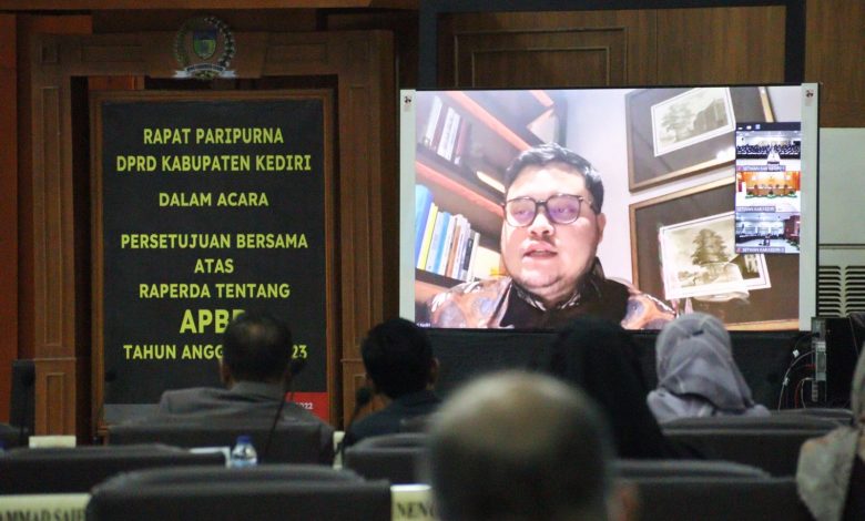Raperda Anggaran Pendapatan Belanja Daerah (APBD) Kabupaten Kediri tahun 2023 telah mendapatkan persetujuan DPRD Kabupaten Kediri untuk ditetapkan sebagai Peraturan Daerah (Perda) dalam rapat paripurna, Selasa (15/11/2022) malam.Dalam raperda 2023, pendapatan daerah ditetapkan sebesar Rp2,8 triliun, belanja daerah Rp3,3 triliun. Adapun, pembiayaan meliputi penerimaan pembiayaan daerah sebesar Rp581,5 miliar dan pengeluaran pembiayaan daerah Rp40 miliar.