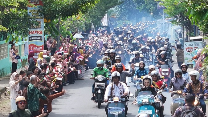 satuwarta.id – Peringatan Hari Kartini di Kota Kediri berlangsung unik. Dipimpin Wali Kota Kediri Vinanda Prameswati, ratusan pecinta vespa , yang didominasi kaum wanita riding bersama dalam balutan pakaian adat dan pakaian khas derah-daerah di Indonesia.