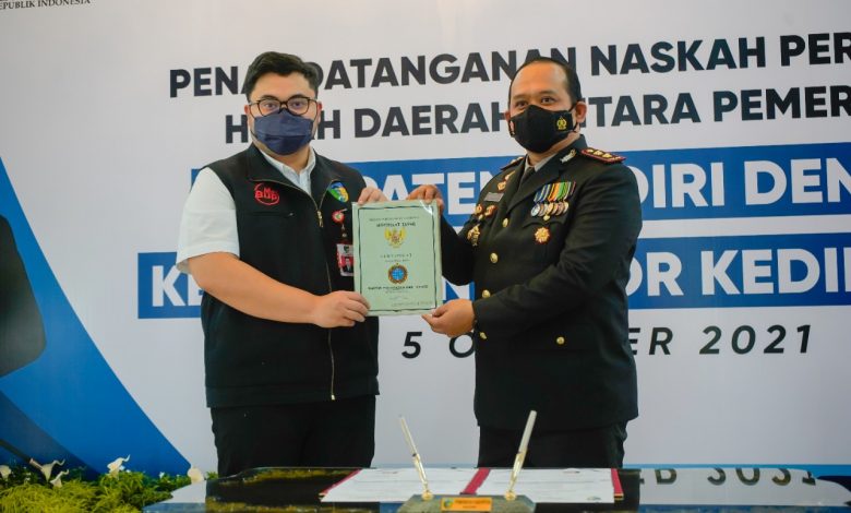 satuwarta.id – Pemerintah Kabupaten Kediri menghibahkan tanah milik Pemda kepada Polres Kediri kota. Tanah tersebut seluas 1.753 meter persegi dengan nilai NJOP Rp 192 Juta.