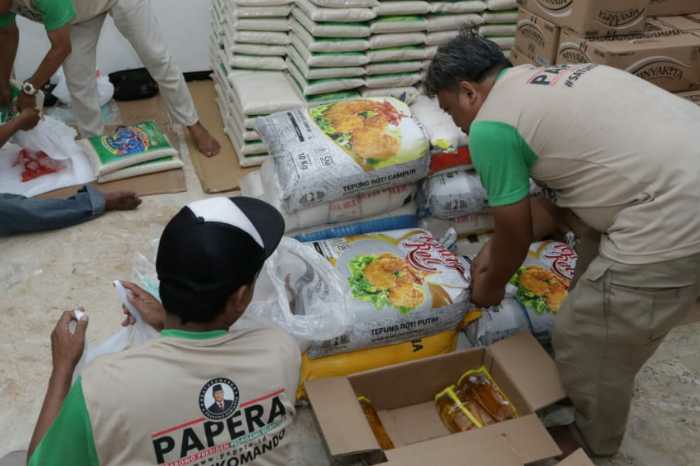 Dalam kegiatan yang berlangsung di rumah Pemenangan Prabowo Subianto tersebut, masyarakat bisa mendapatkan satu paket berisi beras 5 kg, gula 1 kg dan minyak 1 liter dengan harga sekitar Rp 60 ribu per paket.