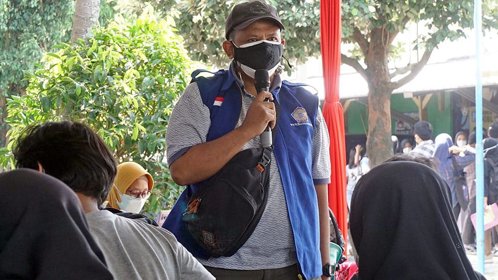 “Sebagai ganti, kami sisipkan di kegiatan vaksinasi, untuk meningkatkan semangat juang belajar adik-adik. Sharing disampaikan dari alumni yang kini berprofesi menjadi jurnalis sampai yang sedang menempuh koas ,” ujar Ari.