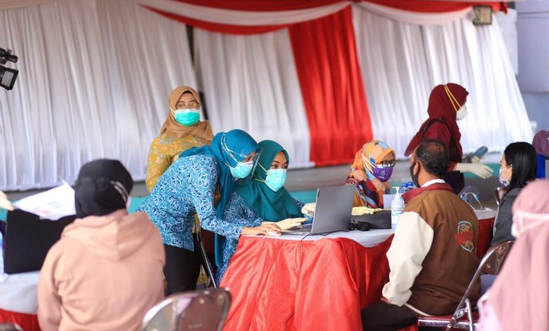 satuwarta.id – Ketua TP PKK Kota Kediri Ferry Silviana Abu Bakar, yang juga istri Wali Kota Kediri Abdullah Abu Bakar turut turun tangan membantu percepatan vaksinasi Kota Kediri di Taman Brantas, Kamis (15/7/2021).