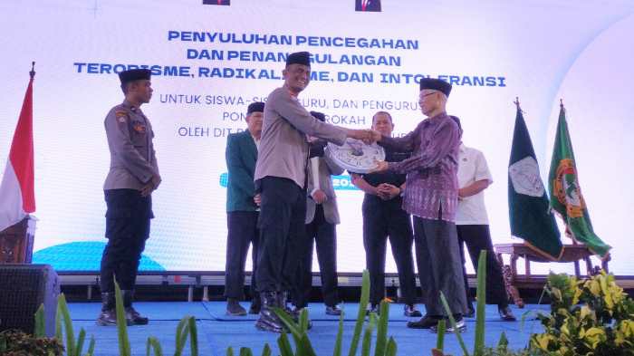 satuwarta.id – Ratusan santri Pondok Pesantren Wali Barokah Kota Kediri mengikuti pembekalan wawasan kebangsaan dengan mengikuti penyuluhan pencegahan terorisme, radikalisme dan intoleransi.