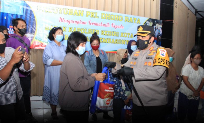 Pendapatan mereka menurun sejak adanya pandemi Covid-19.Total sebanyak 150 paket sembako dibagikan kepada pedagang kaki lima. “Pedagang kaki lima ini salah satu warga yang terdampak pandemi Covid-19. Polres Kediri Kota hadiri untuk membantu meringankan beban masyarakat,” ungkap AKBP Wahyudi.