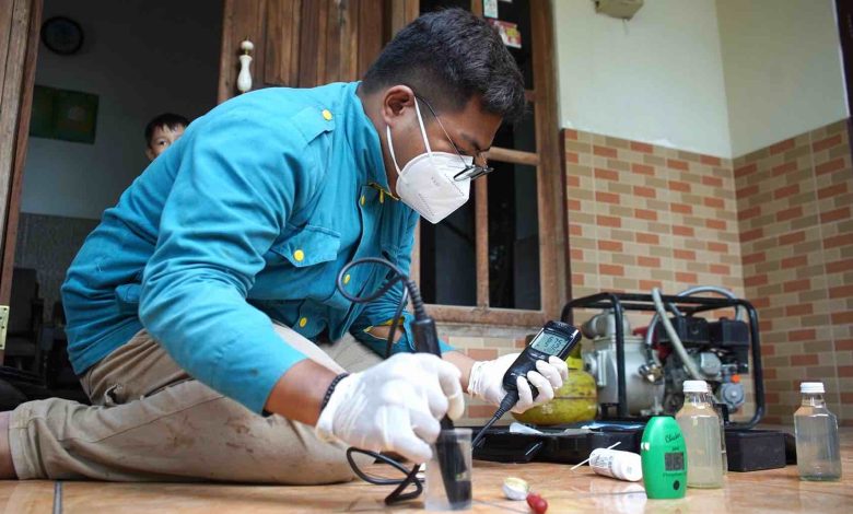 Hasil rapid test menunjukkan air sumur milik Munaim memiliki pH 6,60, Total Dissolved Solids (TDS) sebesar 482 mg/l, nitrat 2 dengan suhu 28,5°C. Kedua, air sumur Bintoro menunjukkan pH 6,53, TDS 514 mg/l, nitrat 10 dengan suhu 28,7°C. Ketiga, air sumur Huda tercatat dengan pH 6,57, TDS 421 mg/l, nitrat 2 dengan suhu 28,6°C.