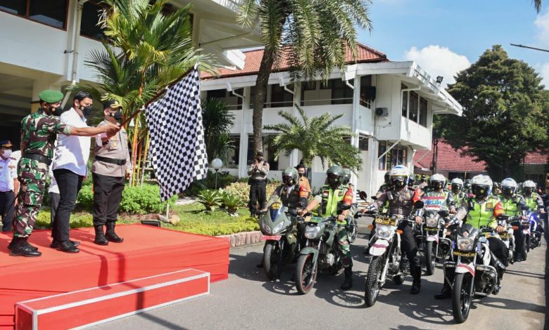 satuwarta.id – Wali Kota Kediri Abdullah Abu Bakar memimpin apel gelar pasukan Pamor Keris (patroli motor penegakan protokol kesehatan masyarakat) di wilayah Kota Kediri, Senin (24/1/2022). Turut mendampingi Kapolres Kediri Kota AKBP Wahyudi dan Komandan Kodim 0809 Kediri Letkol Inf Rully Eko Suryawan.